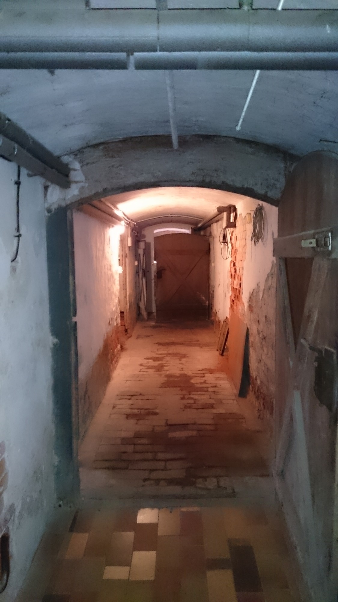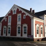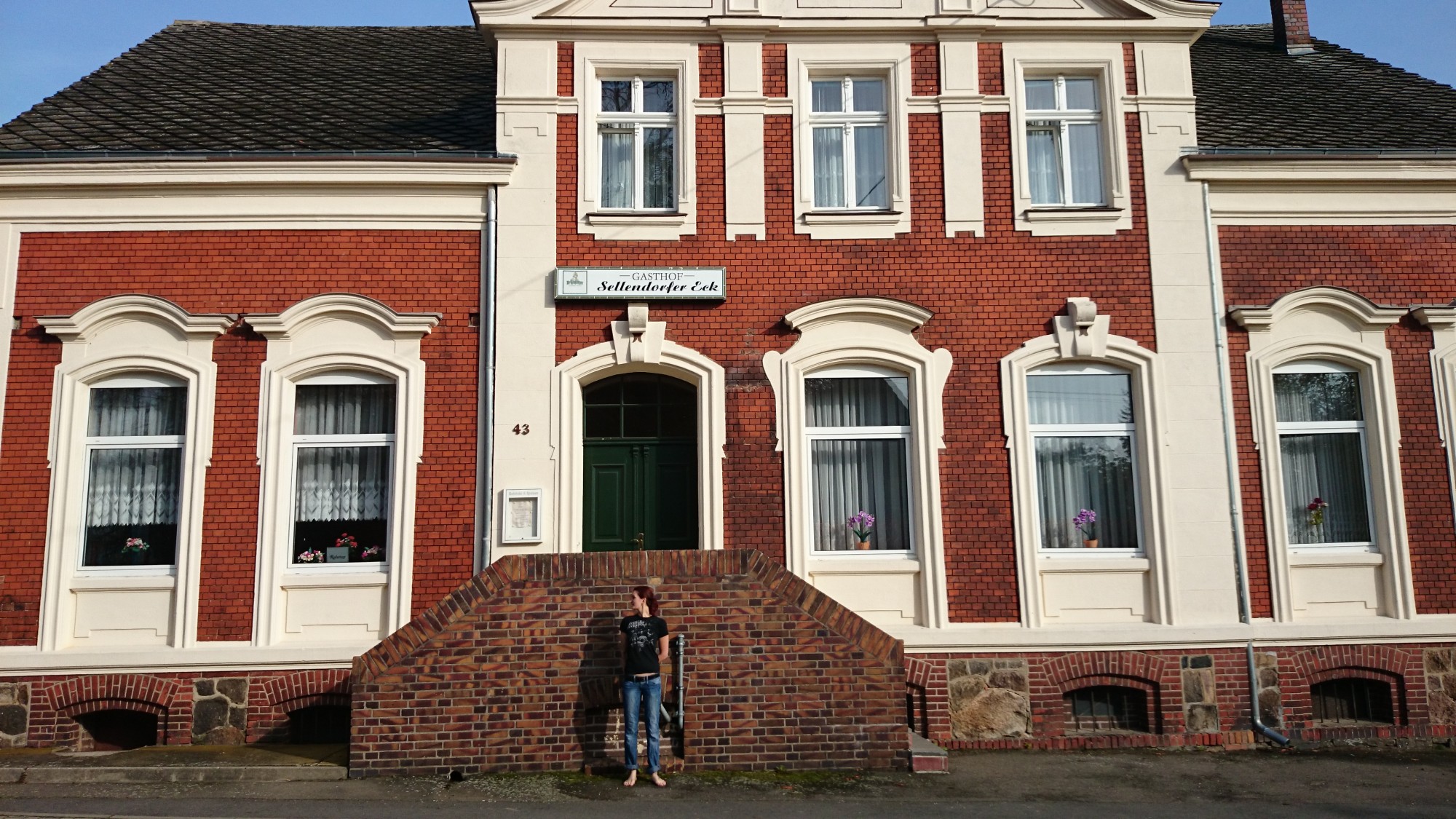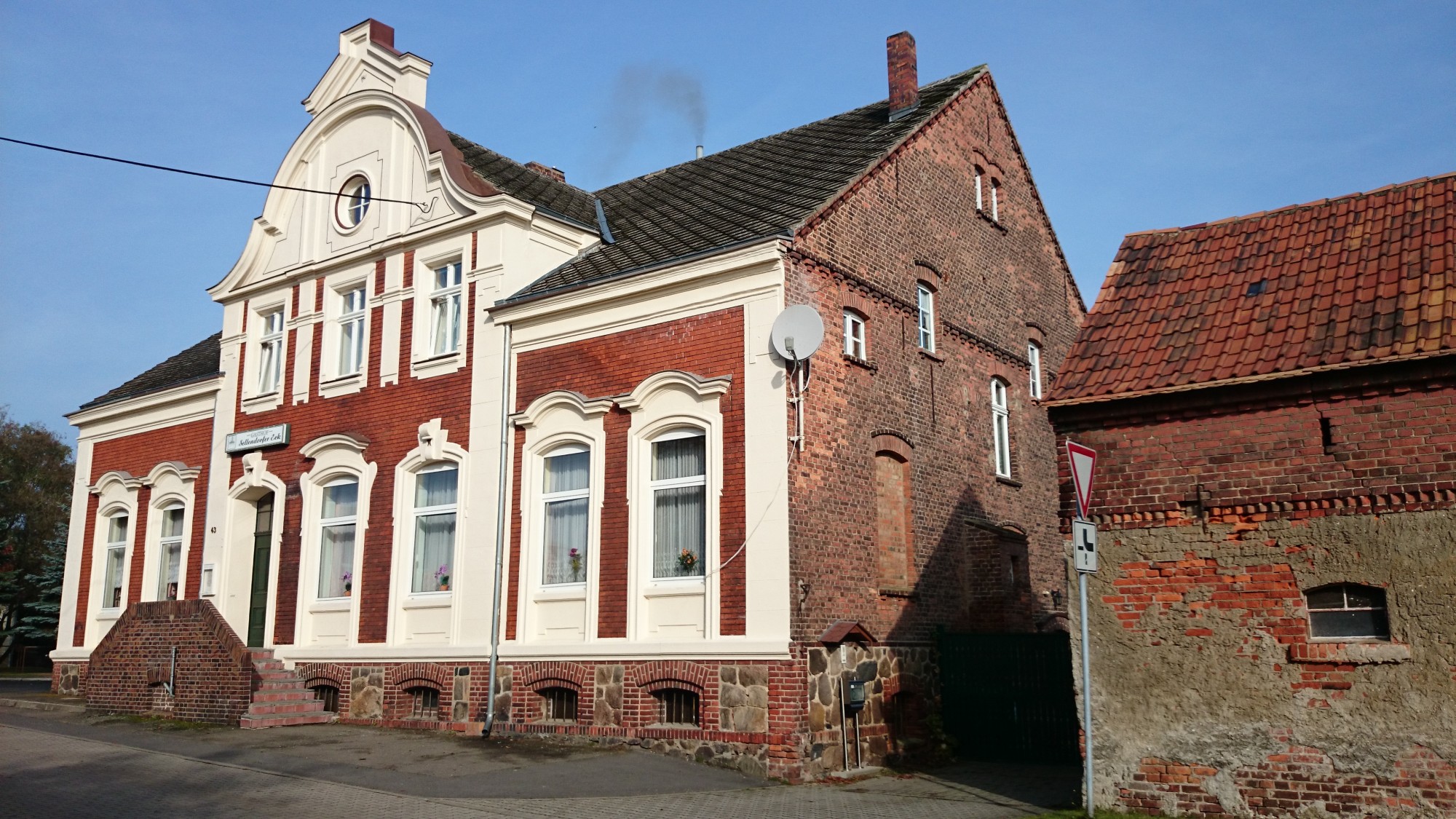 - Vergleich der Frontfassade mit der Seitenfassade. Anhand der Seitenfassade sieht man, dass es alles etwas höher ist, als es von vorne wirkt.